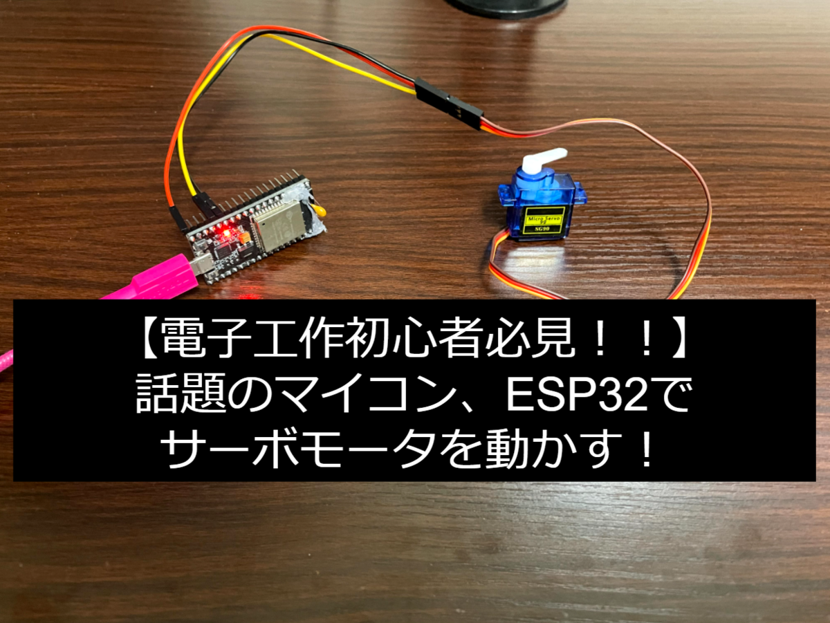 この記事を読むことで、人気のWifi, Bluetooth搭載マイコン、ESP32でサーボモータが動かせるようになります。